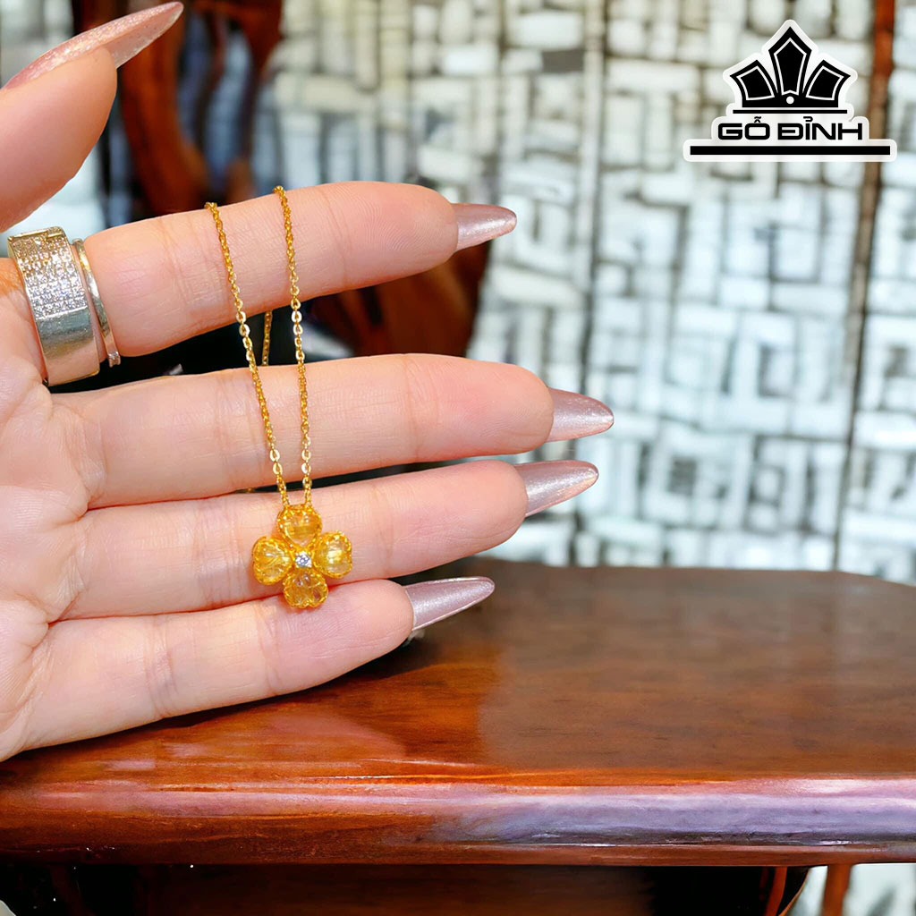Mặt Dây Chuyền Cỏ 4 Lá Đá Thạch Anh Tóc Vàng Bã Mía