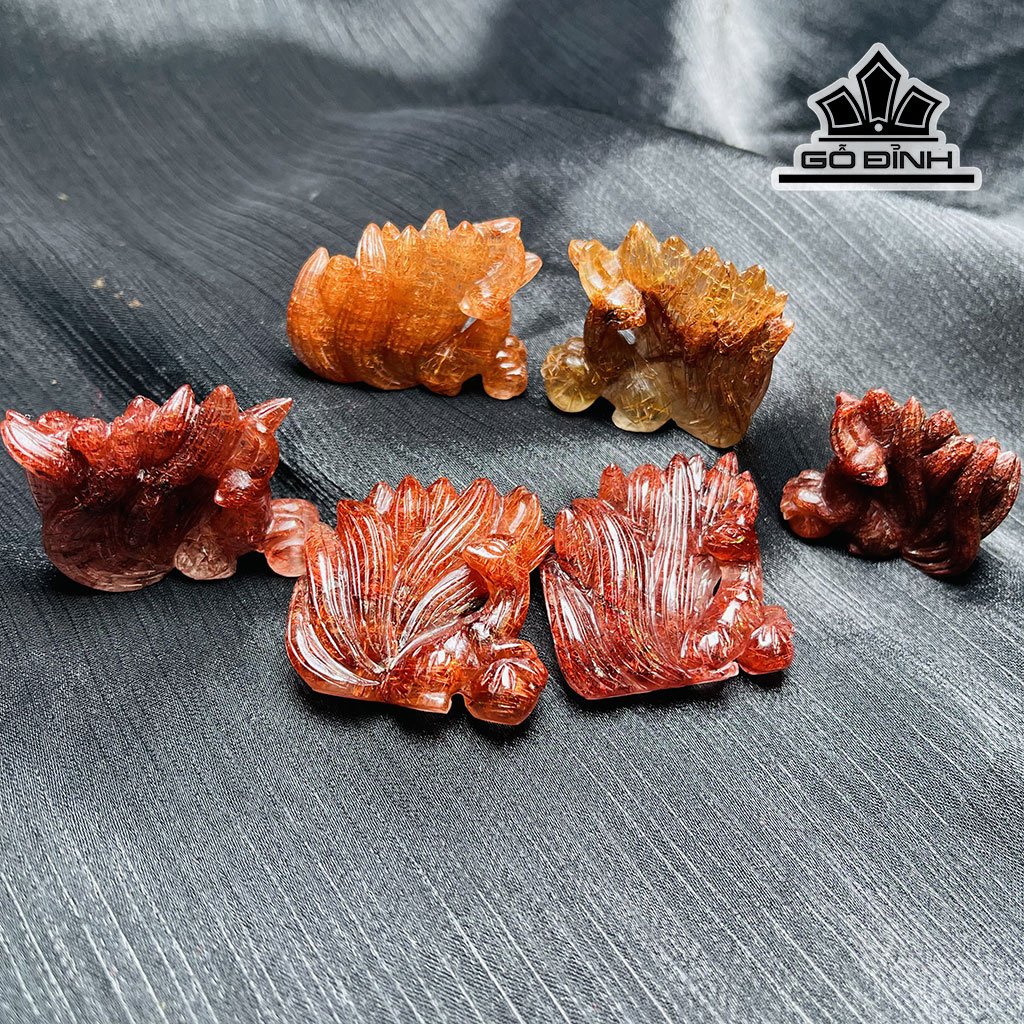 Mặt Dây Chuyền Cửu Vỹ Hồ Ly Ôm Pháp Khí Đá Thạch Anh Tóc Đỏ Cao 3,5 Ngang 3,8 (cm)