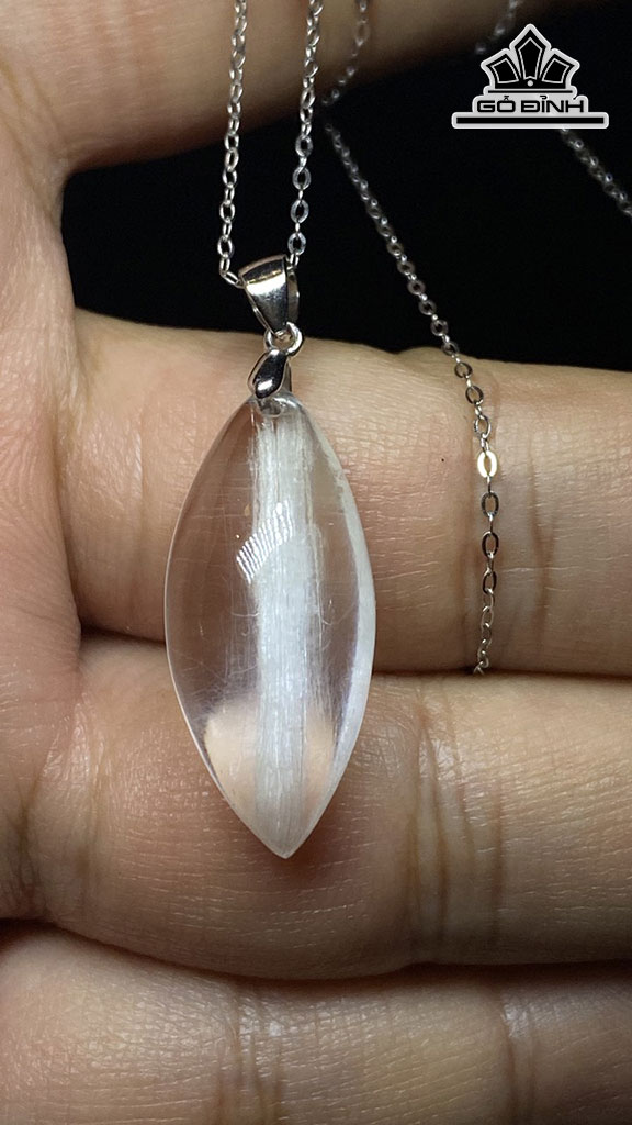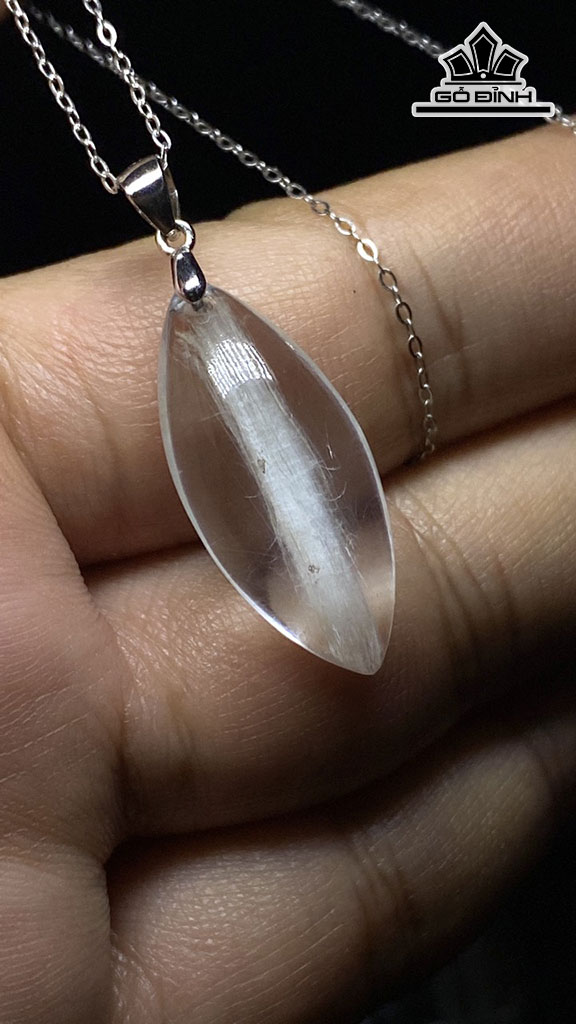 Mặt Dây Chuyền Đá Thạch Anh Tóc Trắng Cao 27 Ngang 12 Sâu 8,8 (mm) 4,4gr