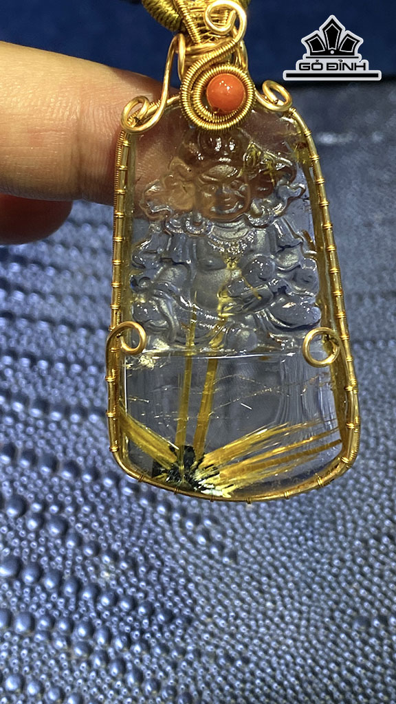 Mặt Dây Chuyền Đá Thạch Anh Tóc Vàng Cao 50 Ngang 31 Sâu 9 (mm) 22gr