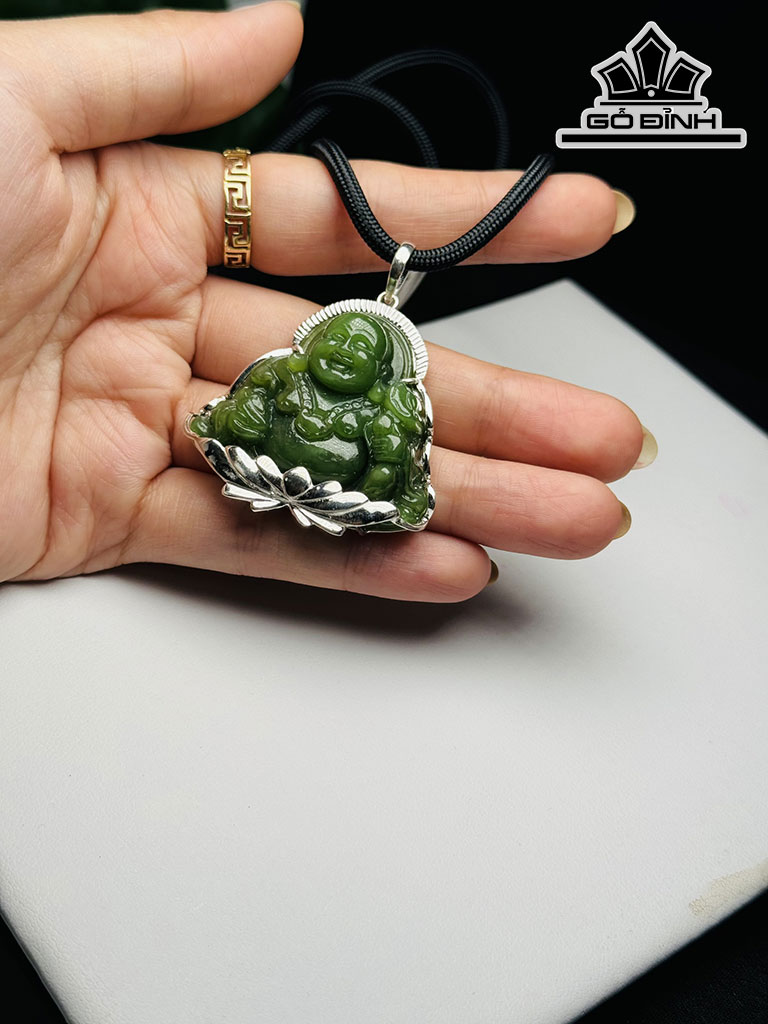 Mặt Dây Chuyền Di Lặc Đá Ngọc Bích Bọc Bạc Cao 3,45 Ngang 4 (cm)