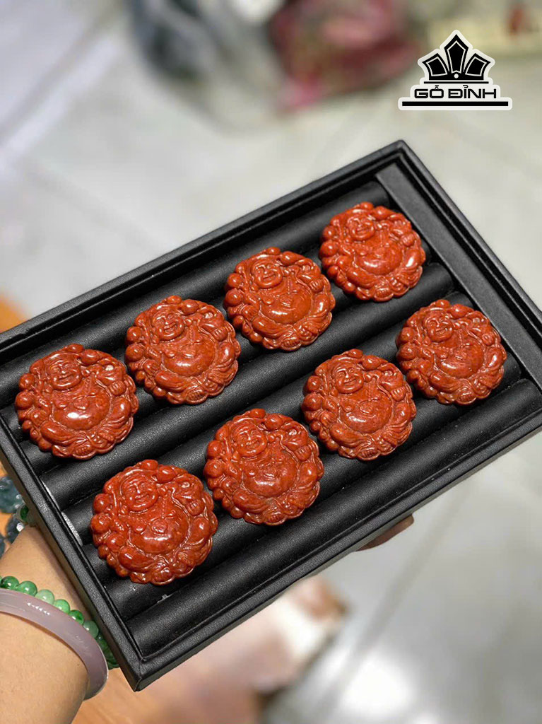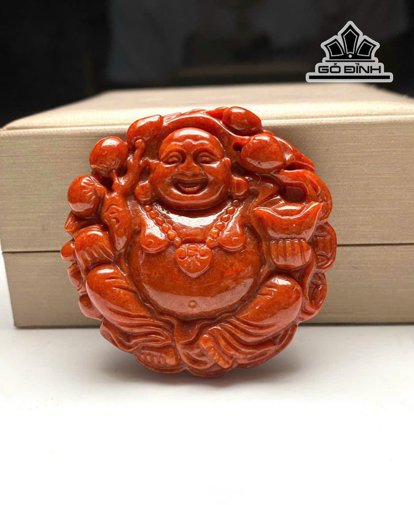 Mặt Dây Chuyền Di Lặc Gánh Đào Đá Cẩm Thạch Huyết Cao 4,8 (cm)