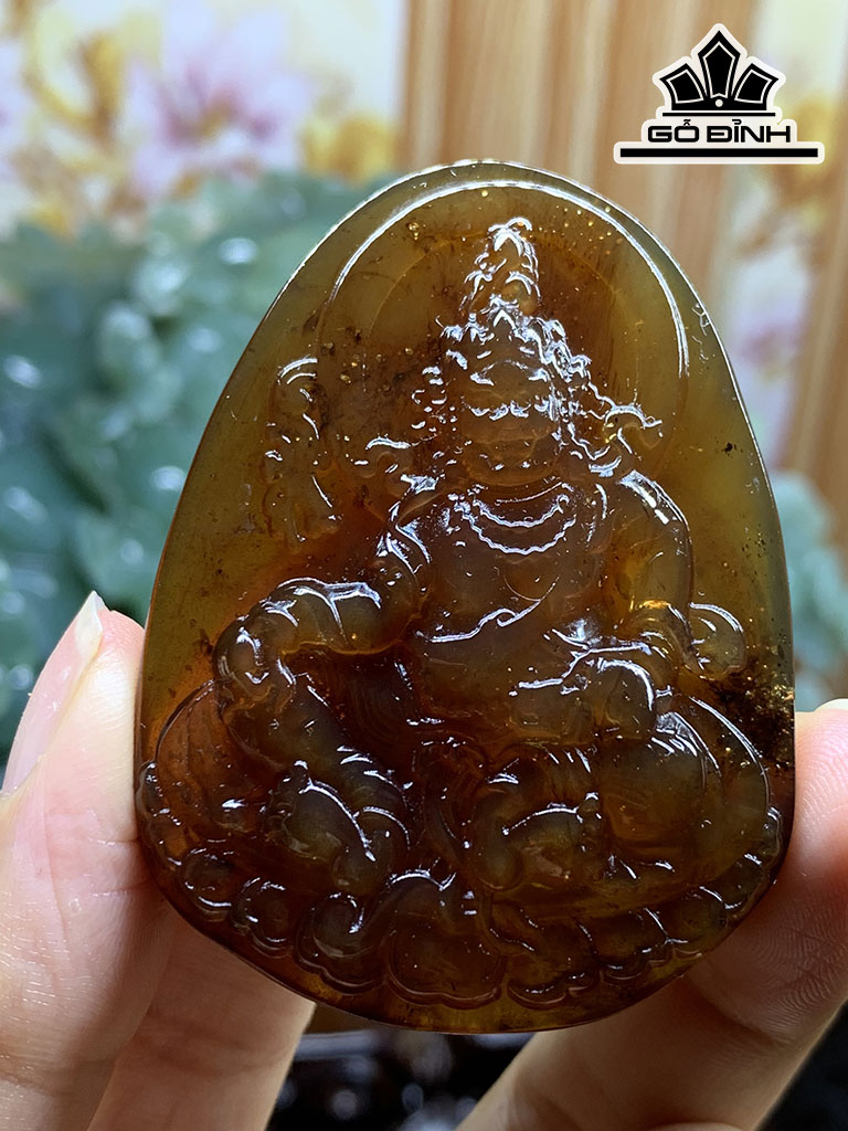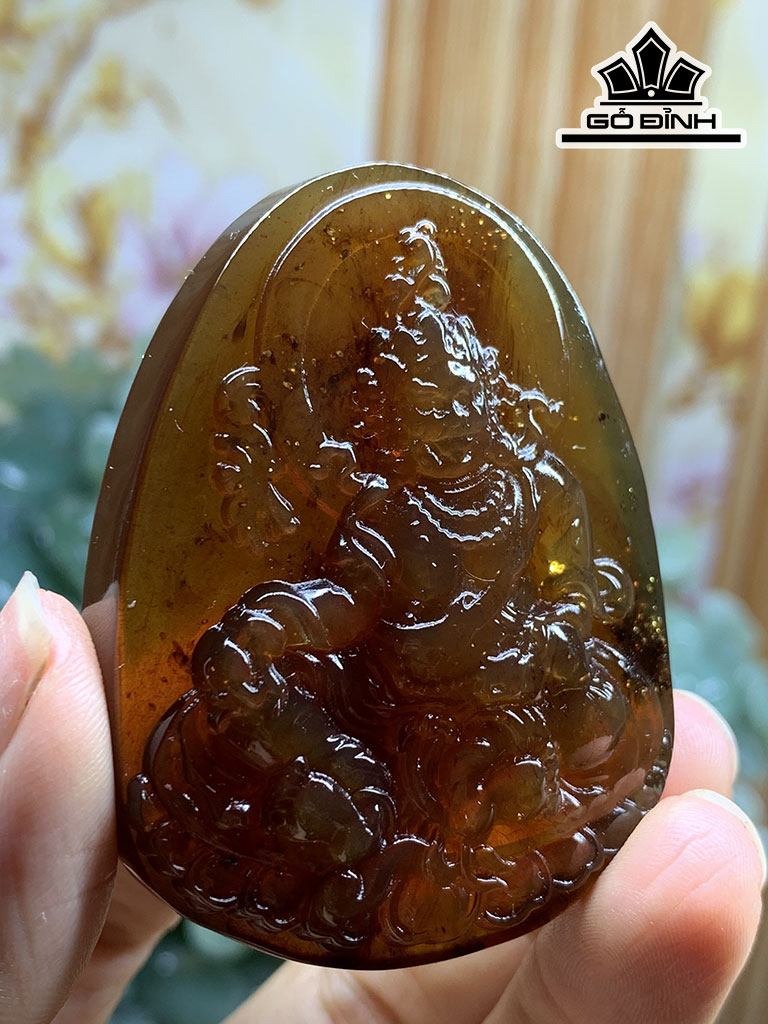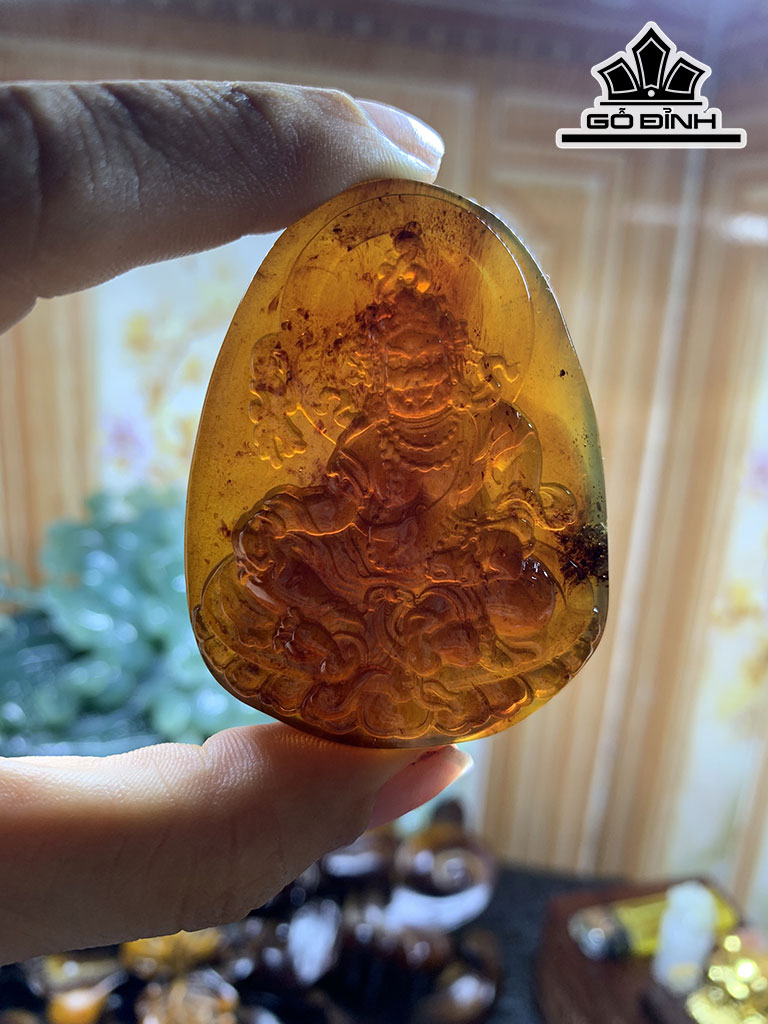 Mặt Dây Chuyền Hoàng Thần Tài Bảo Thiên Đá Hổ Phách Cao 57 Ngang 43 Sâu 16,6 (mm) 25g