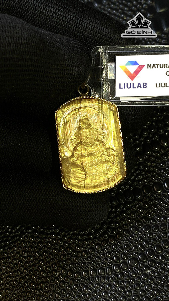 Mặt Dây Chuyền Hoàng Thần Tài Bảo Thiên Đá Thạch Anh Tóc Vàng Cao 29,42 Ngang 19,64 Sâu 8,97 (mm) 58,49g