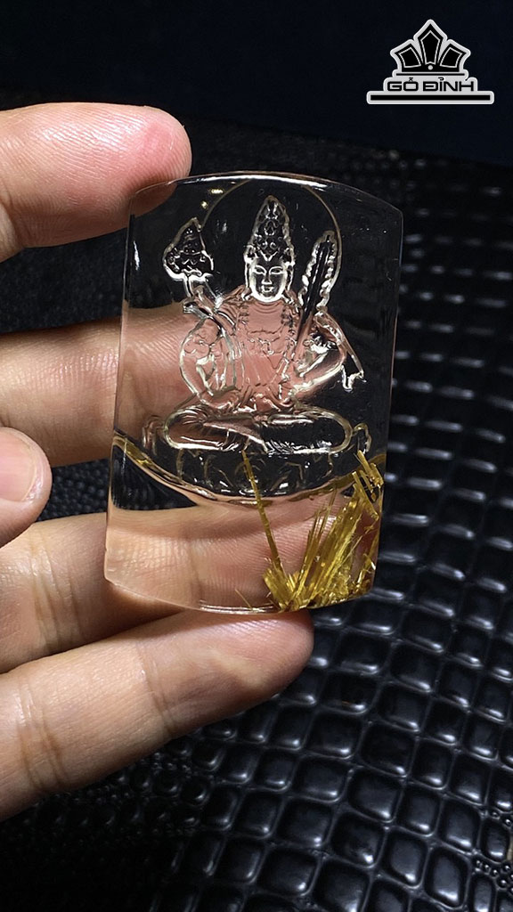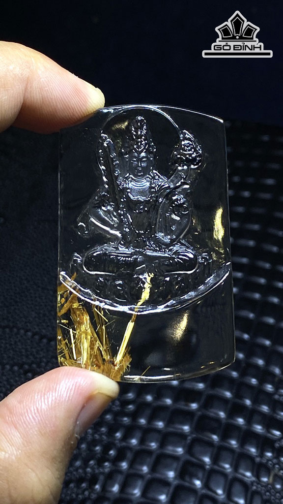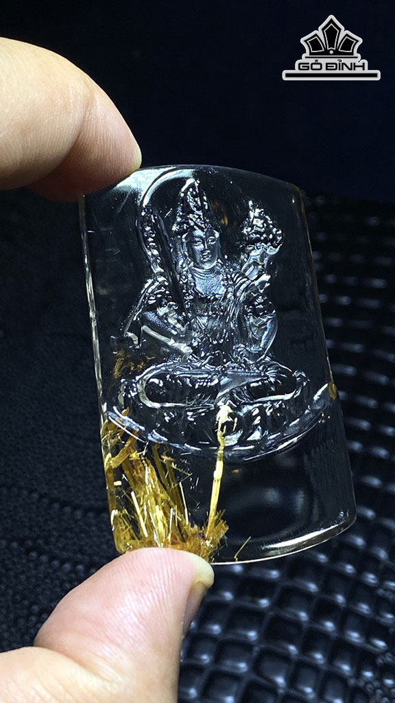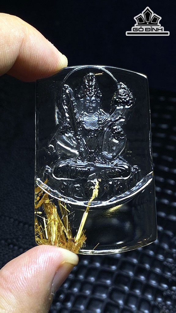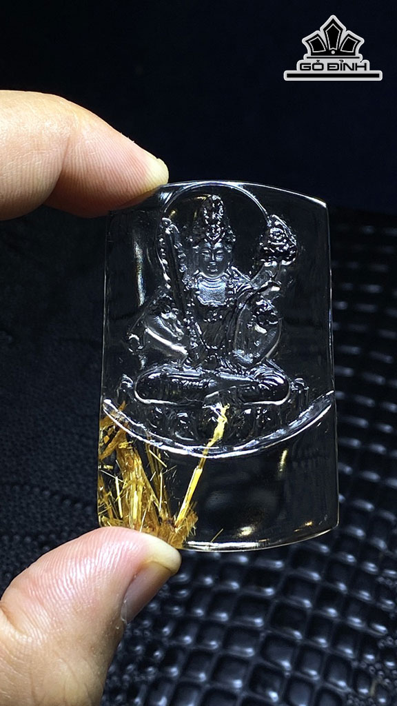 Mặt Dây Chuyền Hư Không Tạng Bồ Tát Đá Thạch Anh Tóc Vàng Cao 56,8 Ngang 36 Sâu 7,5 (mm) 26,8g