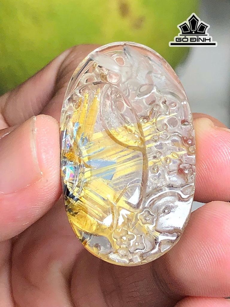 Mặt Dây Chuyền Hỷ Tước Hoa Mai Đá Thạch Anh Tóc Vàng Bã Mía Cao 40,8 Ngang 23,9 Sâu 7,5 (mm) 12g
