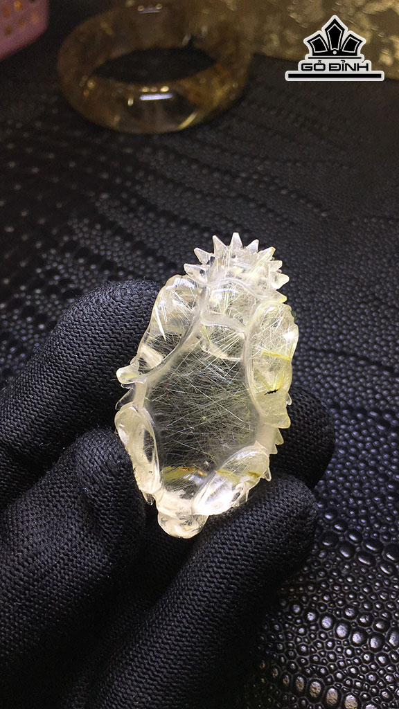 Mặt Dây Chuyền Long Quy Đá Thạch Anh Tóc Vàng Cao 51,7 Ngang 28,7 Sâu 17,2 (mm) 31,7gr