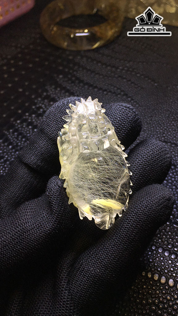 Mặt Dây Chuyền Long Quy Đá Thạch Anh Tóc Vàng Cao 51,7 Ngang 28,7 Sâu 17,2 (mm) 31,7gr