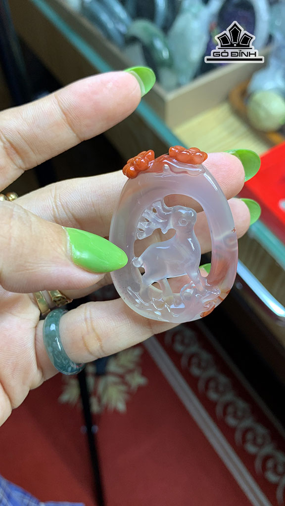Mặt Dây Chuyền Mai Lộc Băng Đá Mã Não Nam Hồng Cao 47,3 Ngang 34,6 Sâu 9,5 (mm) 17,3g