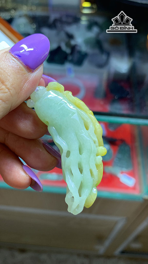 Mặt Dây Chuyền Nhân Sâm Pha Huyết Đá Cẩm Thạch Cao 55,9 Ngang 22,7 Sâu 10,6 (mm) 20,6g