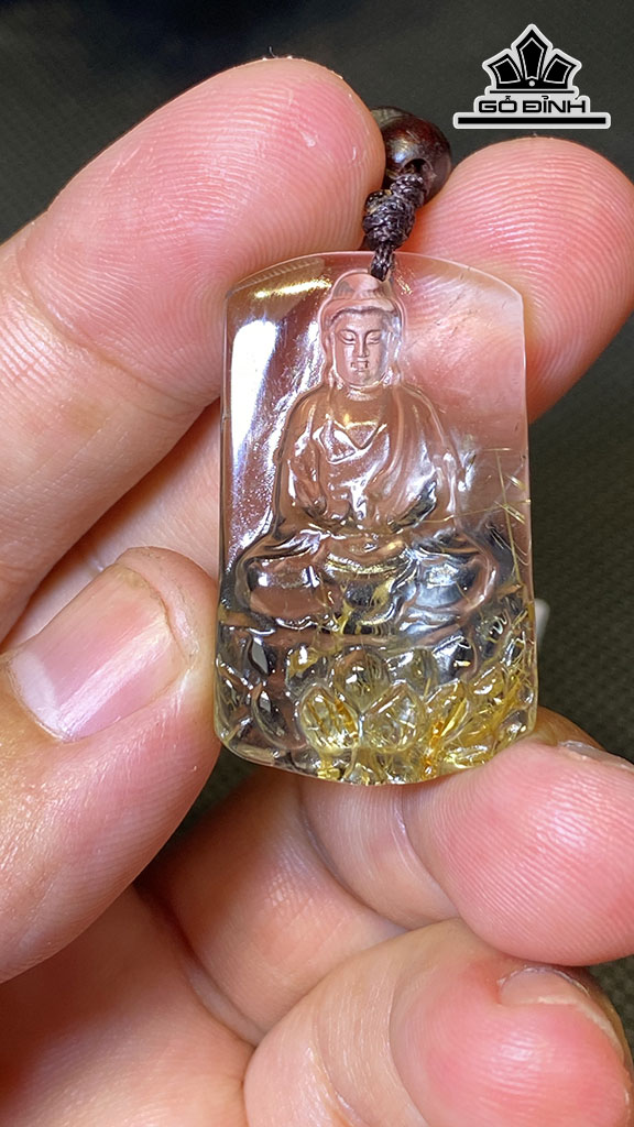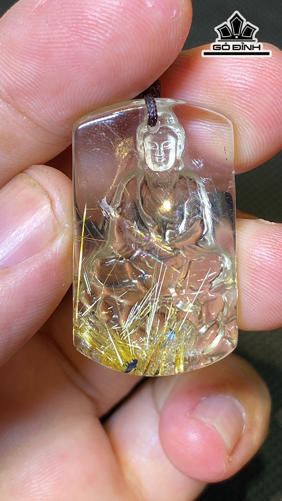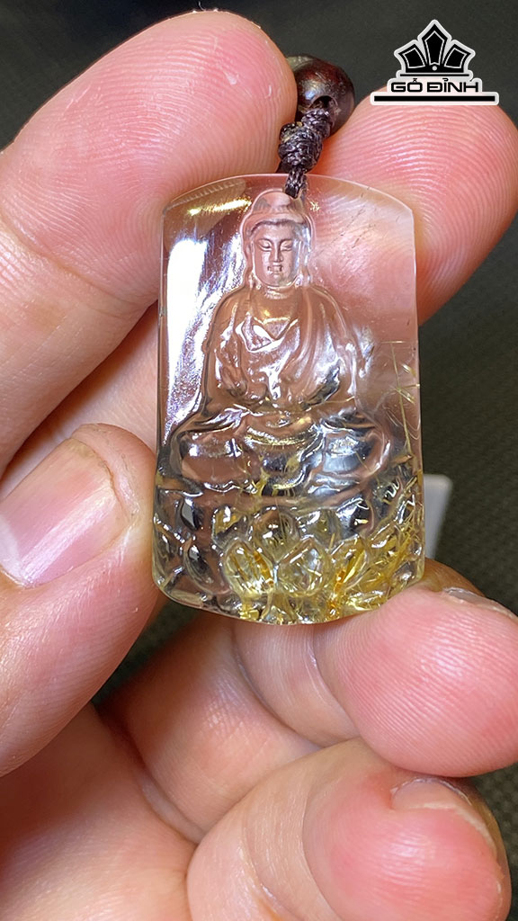 Mặt Dây Chuyền Như Lai Đại Nhật Đá Thạch Anh Tóc Vàng Cao 35 Ngang 21 Sâu 9 (mm) 14g