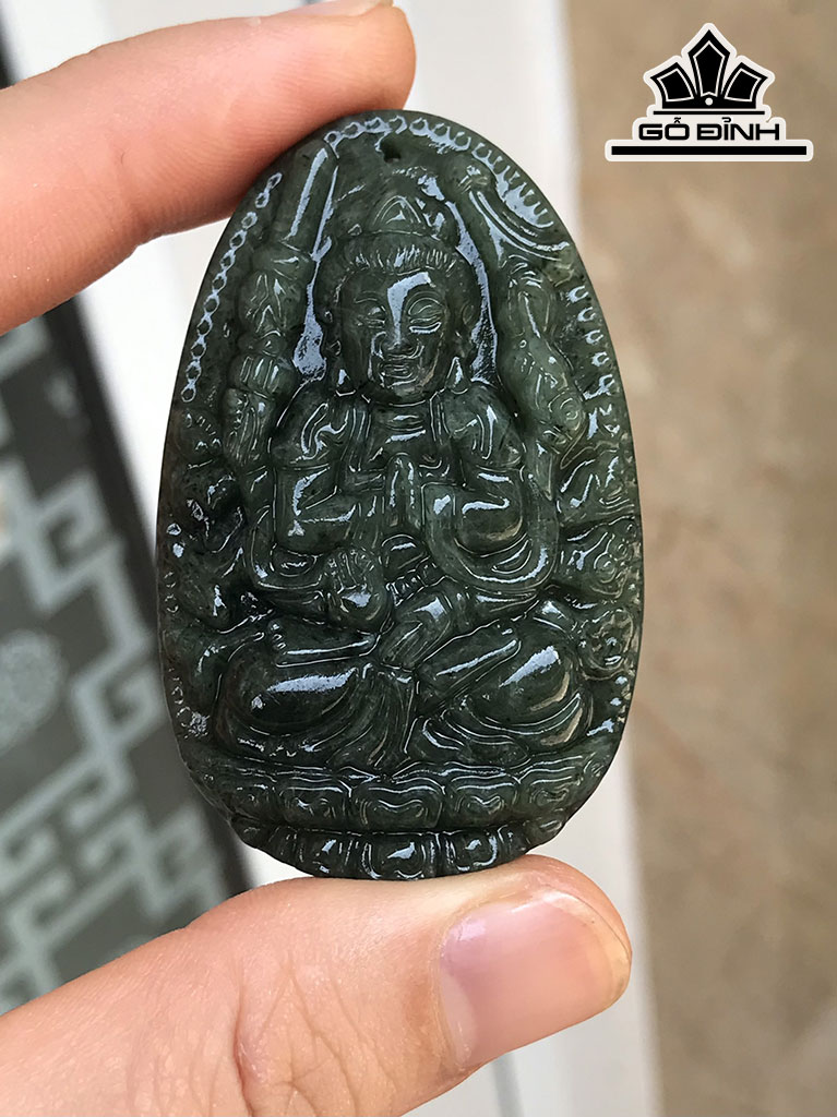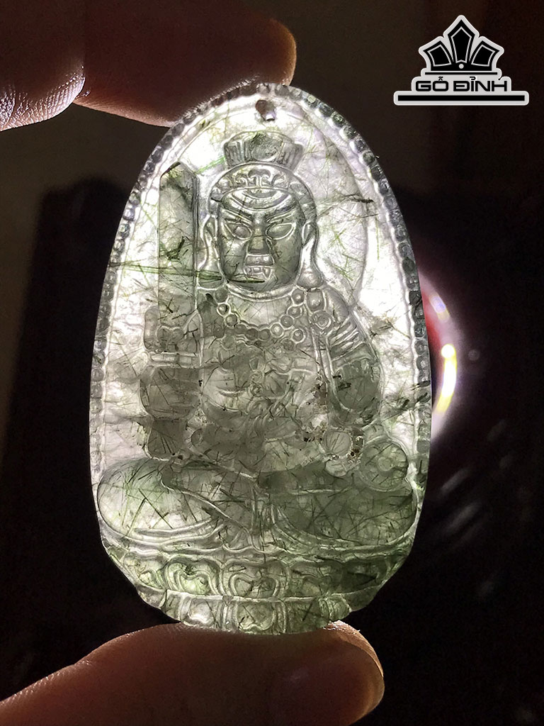 Mặt Dây Chuyền Phật Bản Mệnh Đá Thạch Anh Tóc Xanh Cao 52 Ngang 35 Sâu 11 (mm)