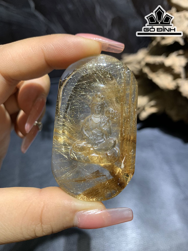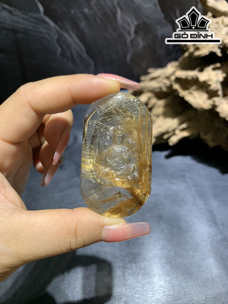 Mặt Dây Chuyền Phật Đá Thạch Anh Tóc Vàng Cao 58,4 Ngang 33,2 Sâu 10,5 (mm)