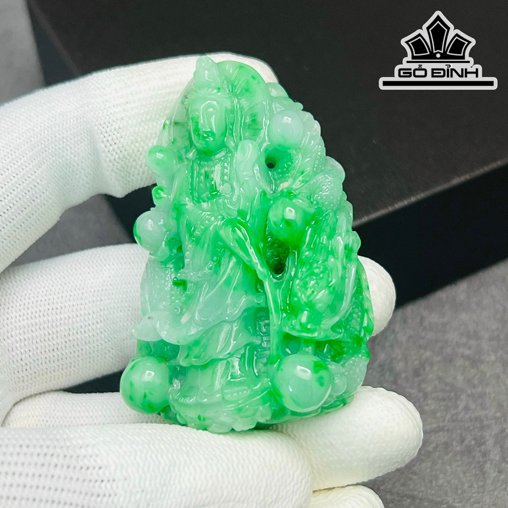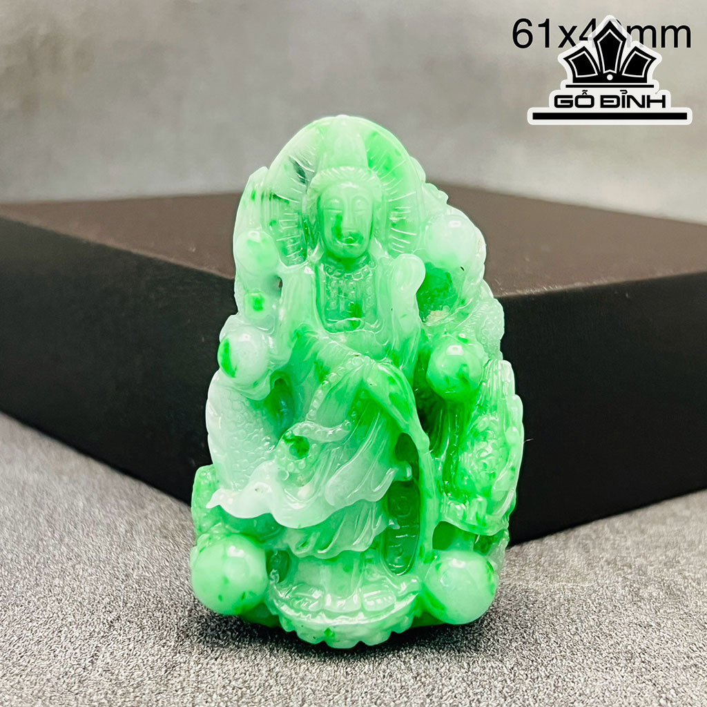 Mặt Dây Chuyền Phật Quan Âm Trụ Long Quá Hải Đá Cẩm Thạch Cao 61 Ngang 40 (mm)