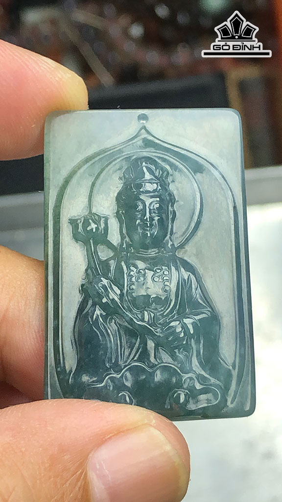 Mặt Dây Chuyền Quan Âm Đại Thế Chí Đá Cẩm Thạch Cao 40 Ngang 25 Sâu 6 (mm) 11,6gr