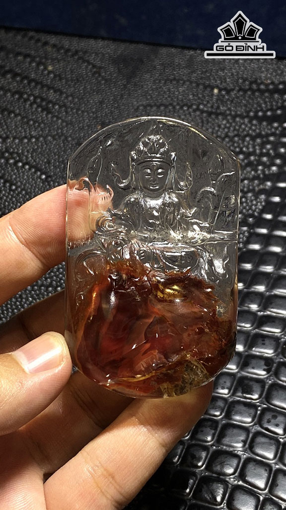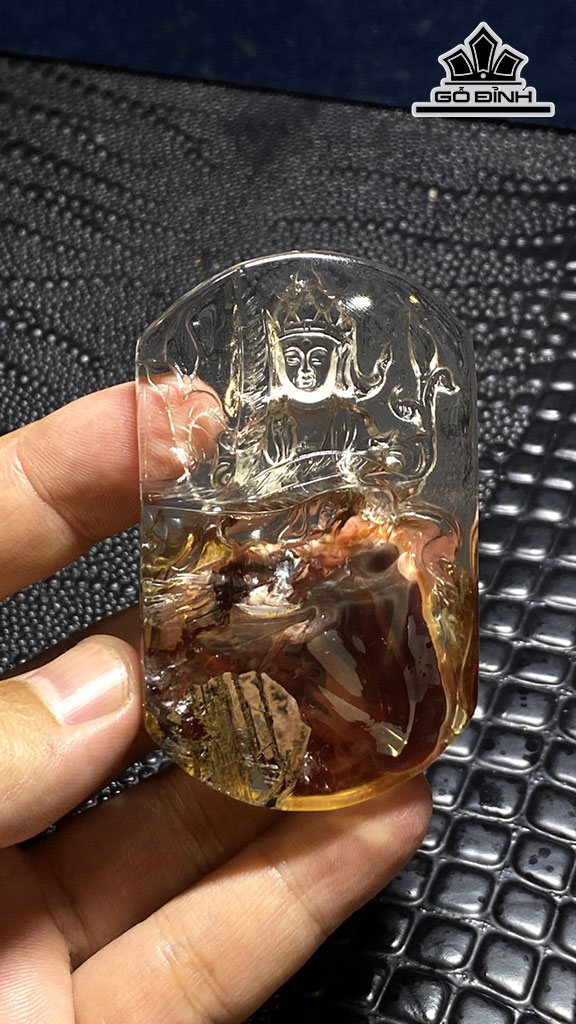 Mặt Dây Chuyền Quan Âm Đá Thạch Anh Nhiễm Sắc Thể Cao 70,89 Ngang 43,71 Sâu 15,22 (mm) 317,12cts