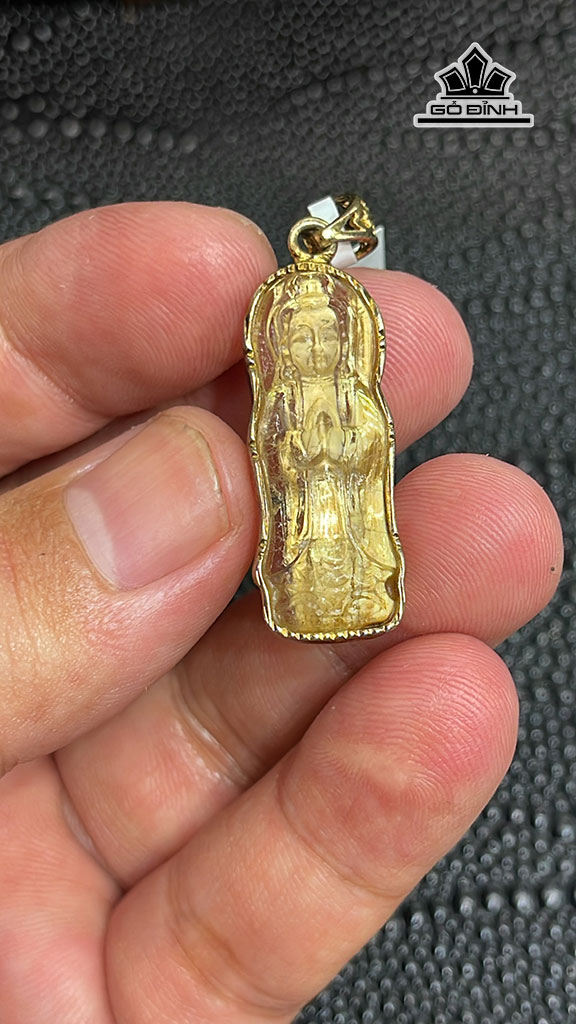 Mặt Dây Chuyền Quan Âm Đá Thạch Anh Tóc Vàng Cao 28 Ngang 12 Sâu 6,5 (mm) 4,6g