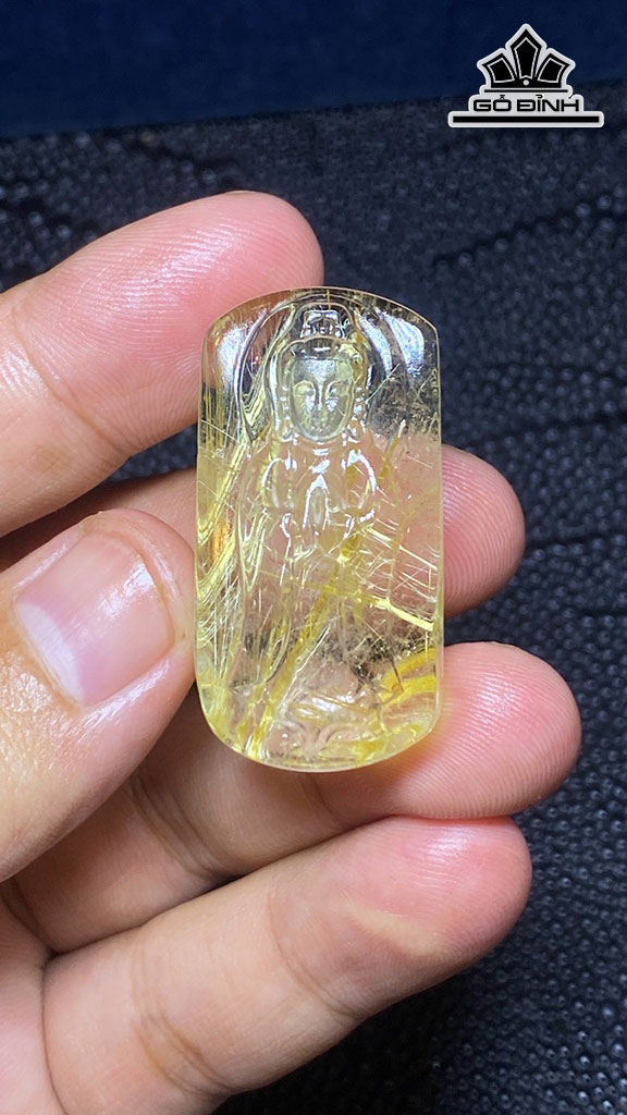 Mặt Dây Chuyền Quan Âm Đá Thạch Anh Tóc Vàng Cao 39 Ngang 19,8 Sâu 12,5 (mm) 18,6gr