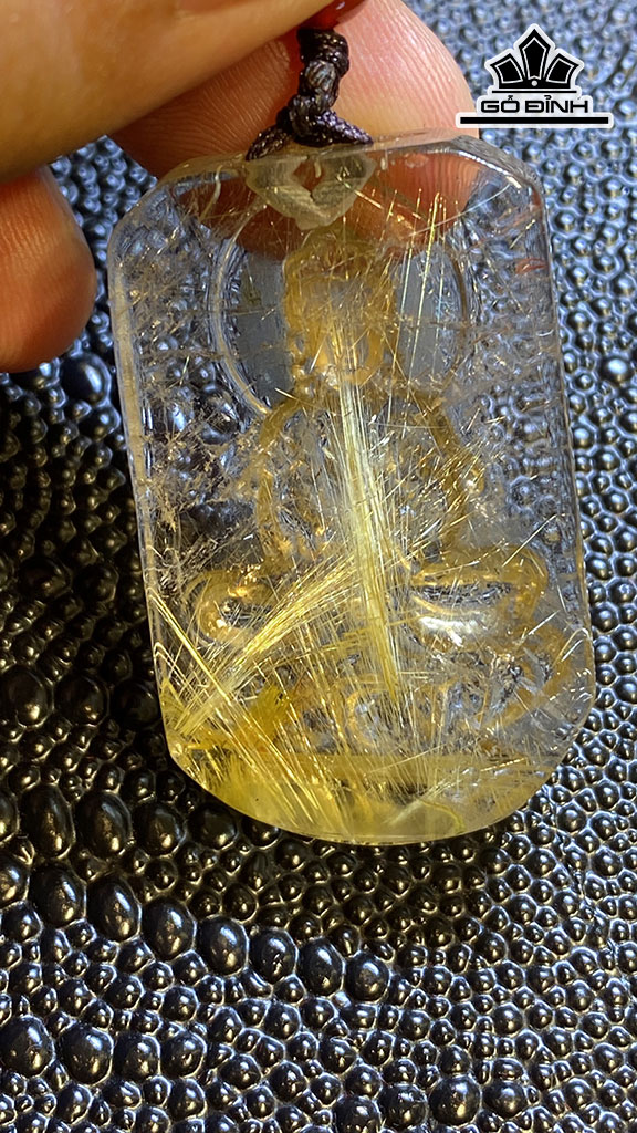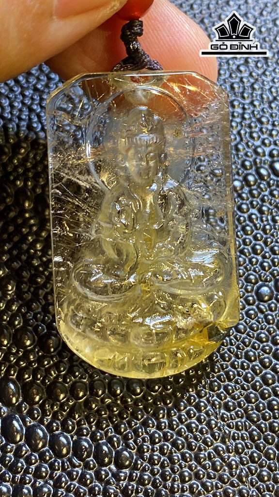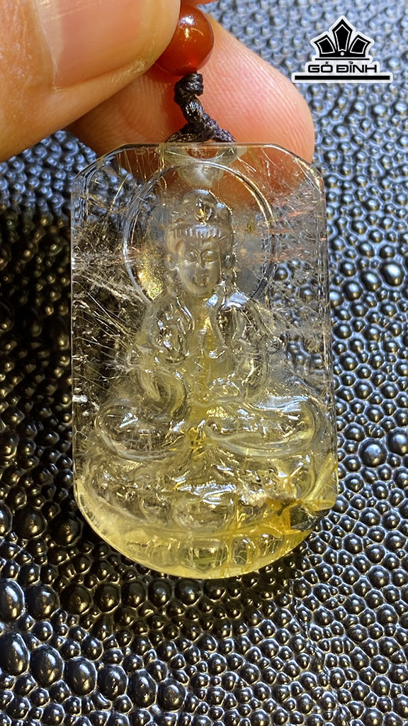 Mặt Dây Chuyền Quan Âm Đá Thạch Anh Tóc Vàng Cao 42,2 Ngang 25,5 Sâu 11,2 (mm) 22,2g