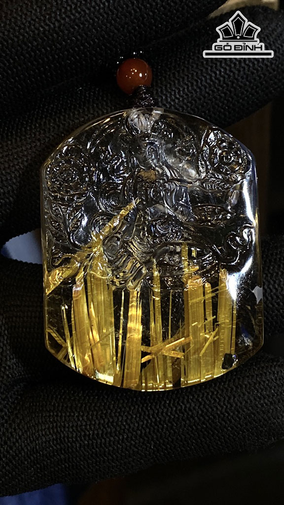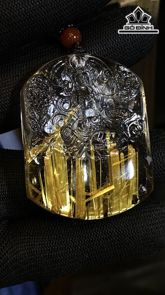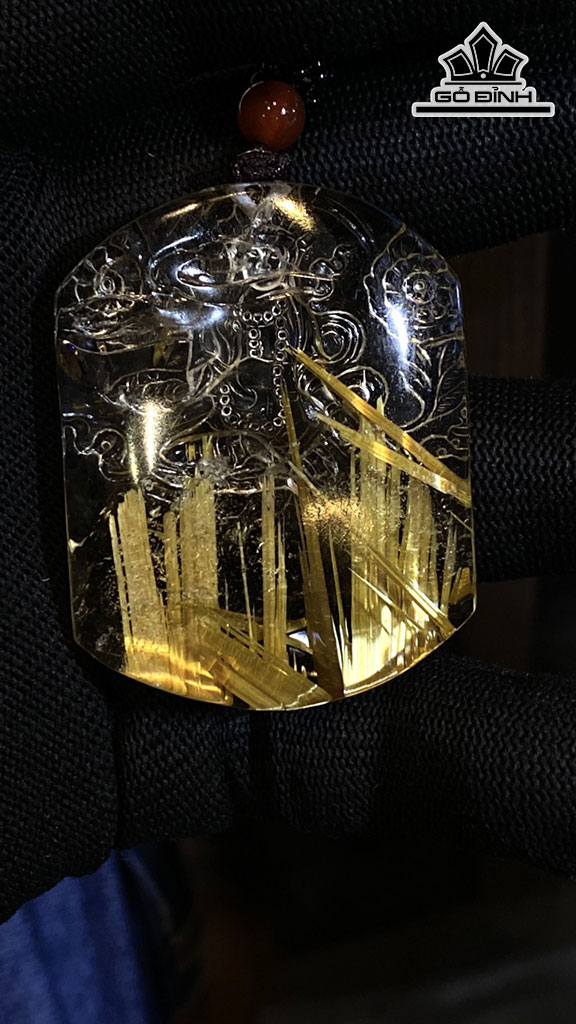 Mặt Dây Chuyền Quan Âm Đá Thạch Anh Tóc Vàng Cao 47,9 Ngang 37,3 Sâu 13 (mm) 43,9g