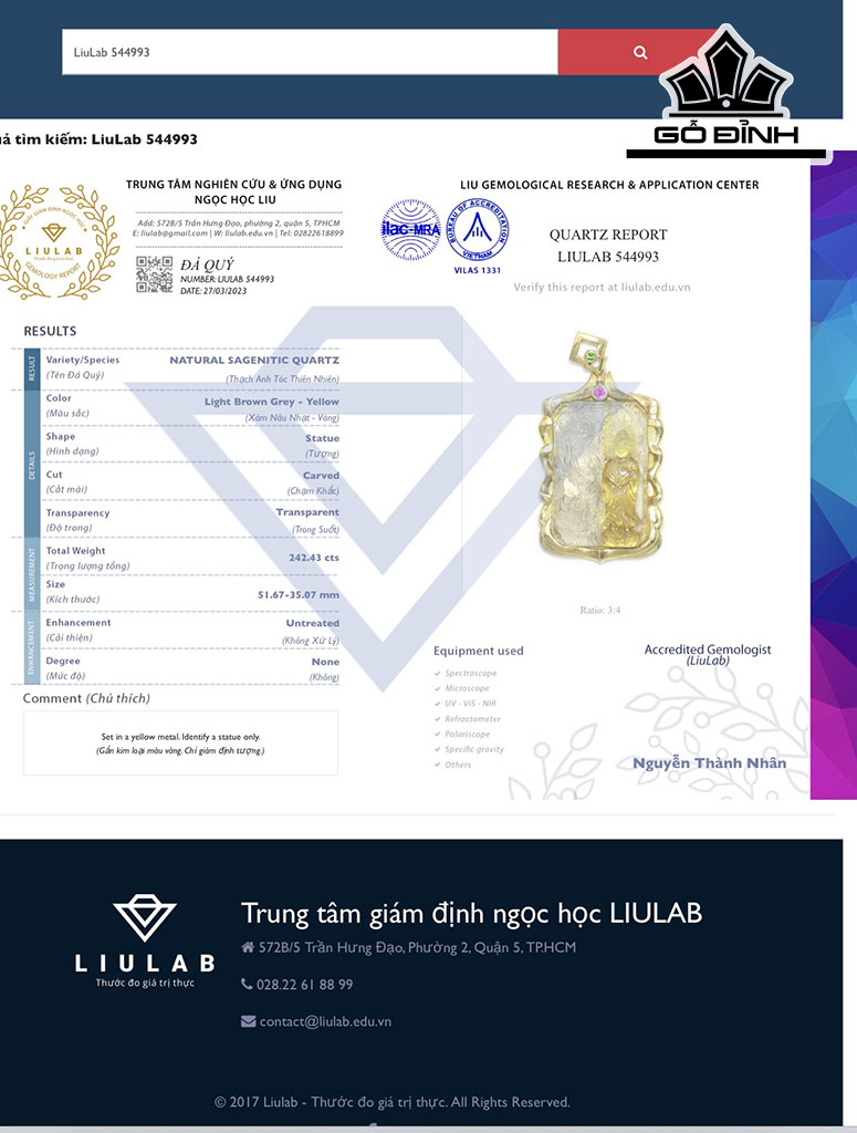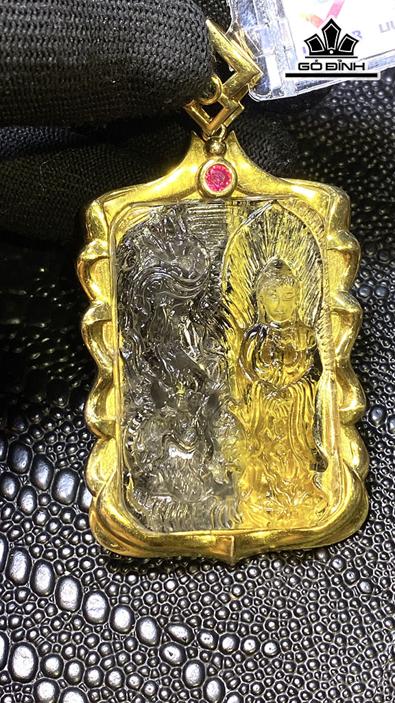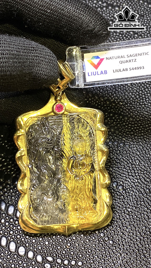 Mặt Dây Chuyền Quan Âm Đá Thạch Anh Tóc Vàng Cao 51,67 Ngang 35,15 (mm) 242,43gr
