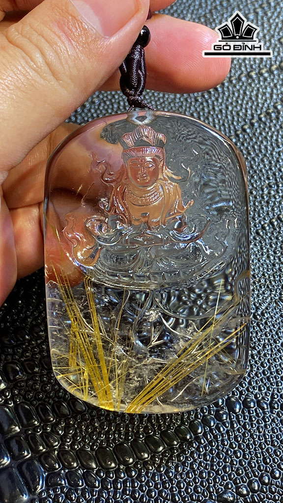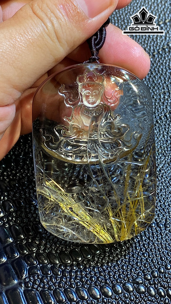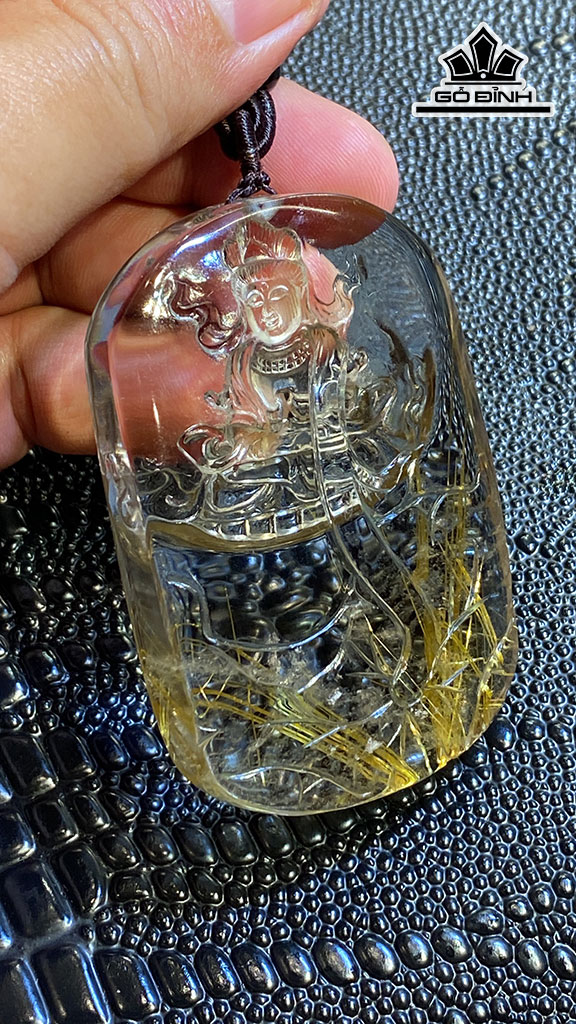 Mặt Dây Chuyền Quan Âm Đá Thạch Anh Tóc Vàng Cao 70 Ngang 47 Sâu 14,8 (mm) 93g