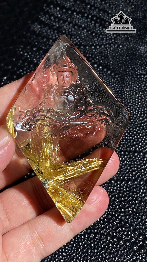 Mặt Dây Chuyền Quan Âm Đá Thạch Anh Tóc Vàng Cao 82 Ngang 53,6 Sâu 13,6 (mm) 70,6g