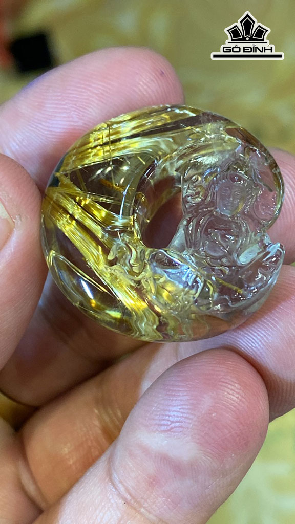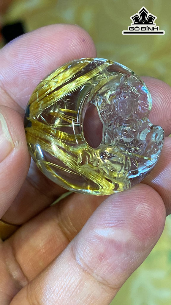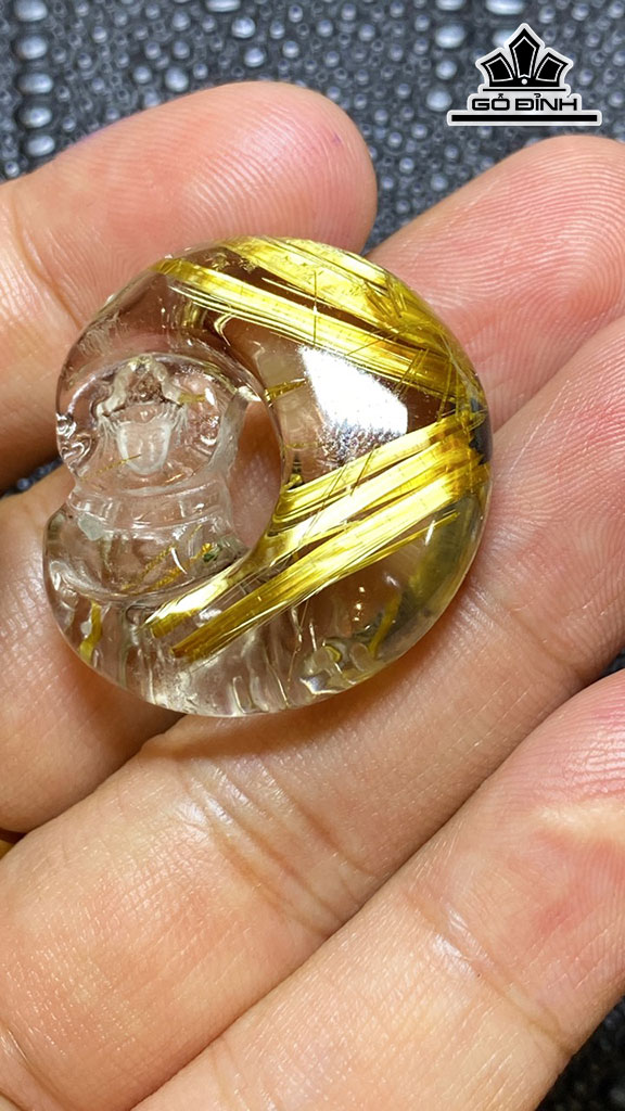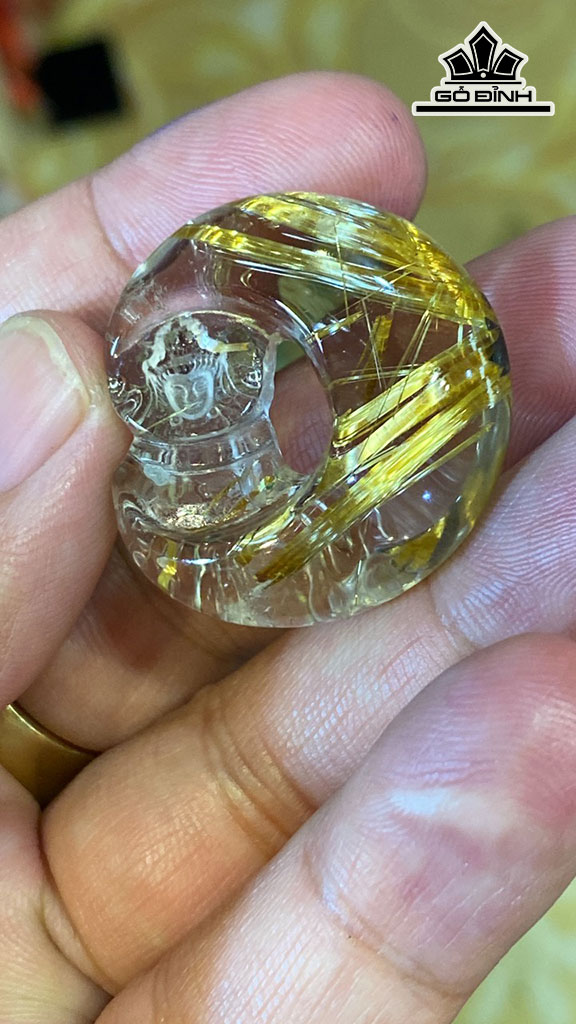 Mặt Dây Chuyền Quan Âm Tọa Nguyệt Đá Thạch Anh Tóc Vàng