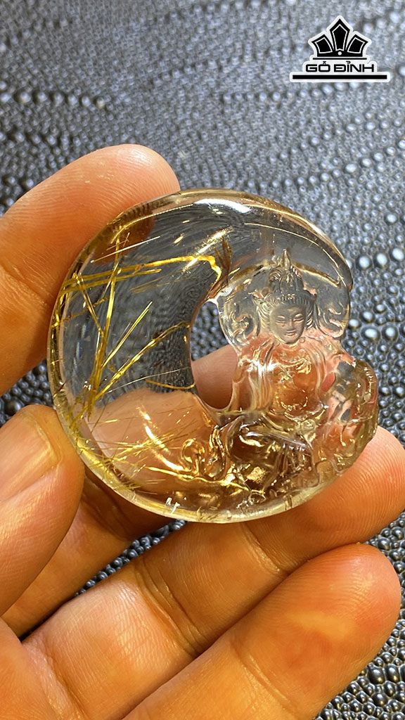 Mặt Dây Chuyền Quan Âm Tọa Nguyệt Đá Thạch Anh Tóc Vàng Cao 43,2 Ngang 41 Sâu 12,6 (mm) 28,5g