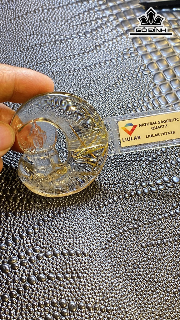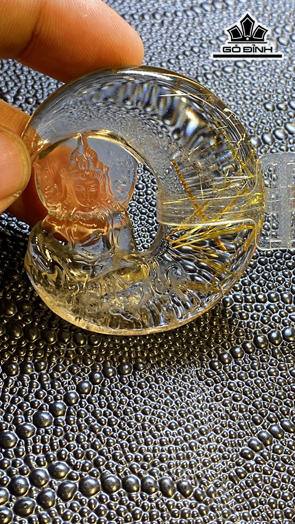 Mặt Dây Chuyền Quan Âm Tọa Nguyệt Đá Thạch Anh Tóc Vàng Cao 52,54 Ngang 47,42 Sâu 12,06 (mm) 188,26cts