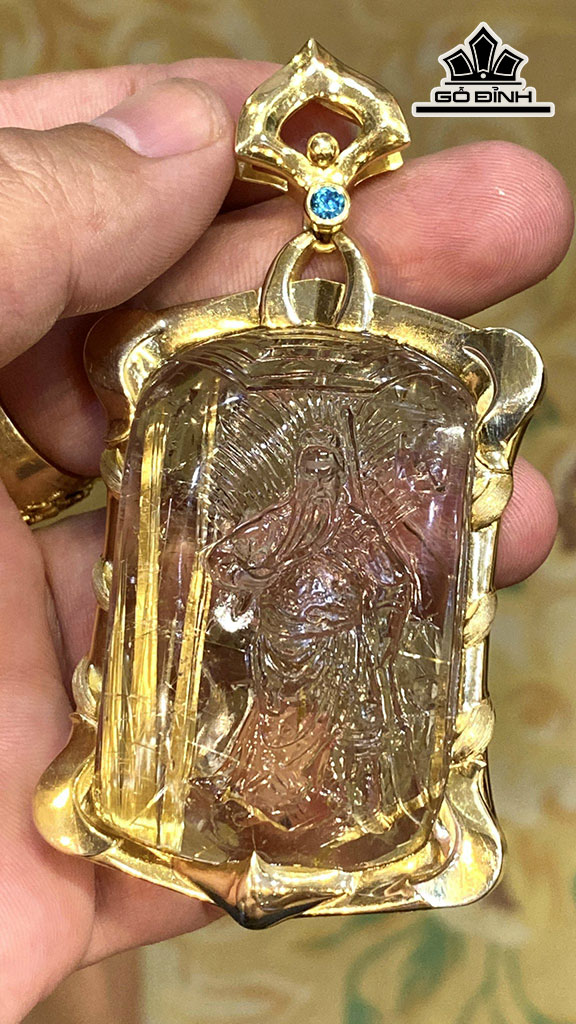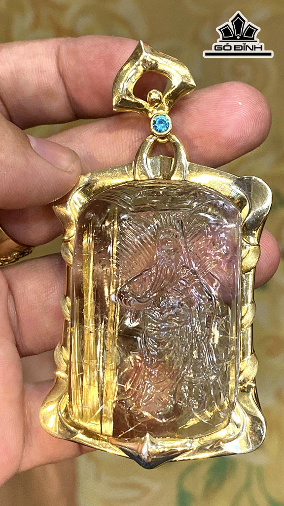 Mặt Dây Chuyền Quan Công Đá Thạch Anh Tóc Vàng Cao 62,8 Ngang 46,8 Sâu 10,6 (mm) 56gr