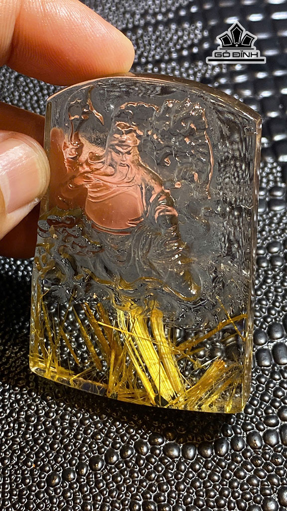 Mặt Dây Chuyền Quan Công Đá Thạch Anh Tóc Vàng Cao 66,8 Ngang 45,5 Sâu 11,8 (mm) 69,5g