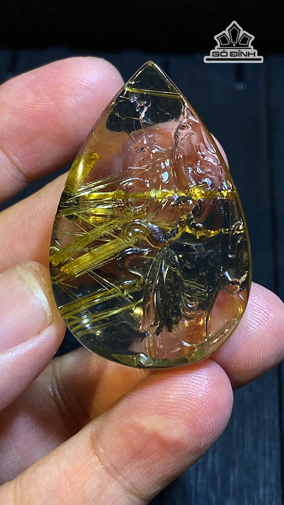 Mặt Dây Chuyền Quan Công Hoa Thị Đá Thạch Anh Tóc Vàng Cao 46 Ngang 30,5 Sâu 11,5 (mm) 24,8g