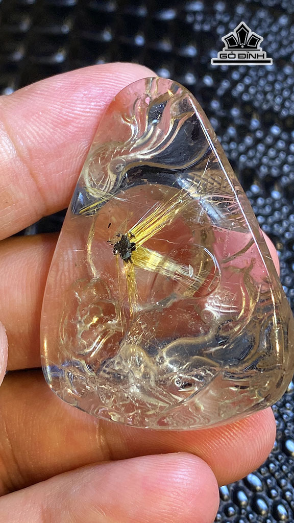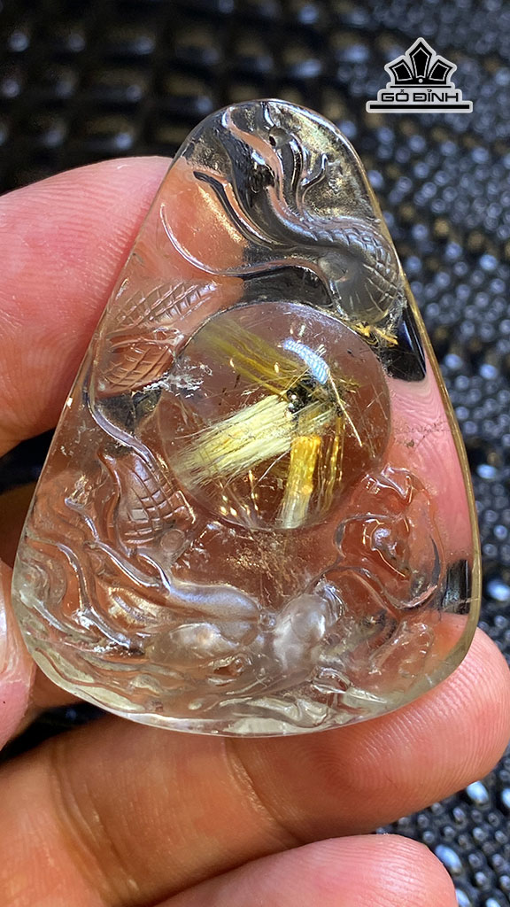 Mặt Dây Chuyền Rồng Hoa Thị Đá Thạch Anh Tóc Vàng Cao 46,6 Ngang 34,8 Sâu 11 (mm) 20g