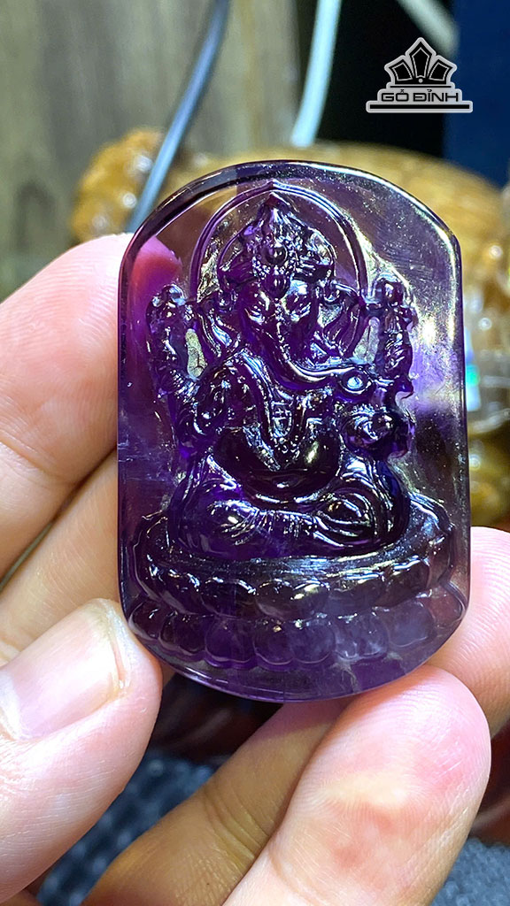 Mặt Dây Chuyền Thần Ganesha Đá Thạch Anh Tím