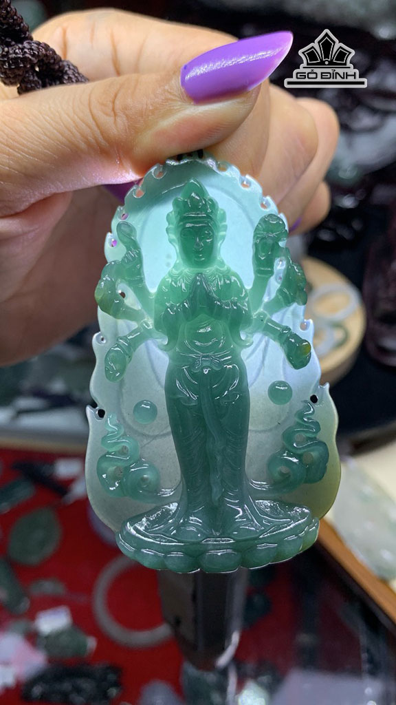 Mặt Dây Chuyền Thiên Thủ Đá Cẩm Thạch Cao 75,5 Ngang 44,9 Sâu 8,8 (mm) 46g