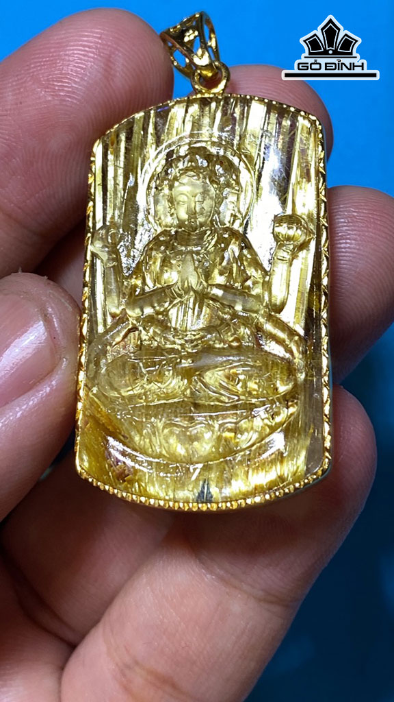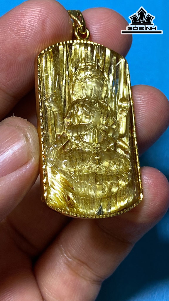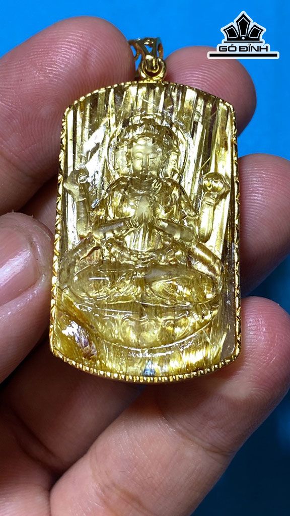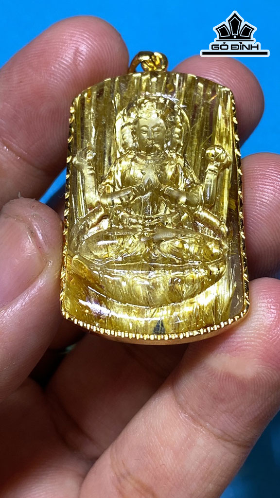 Mặt Dây Chuyền Thiên Thủ Thiên Nhãn Đá Thạch Anh Tóc Vàng Bã Mía Cao 41,9 Ngang 25 Sâu 9,8 (mm) 19,3g