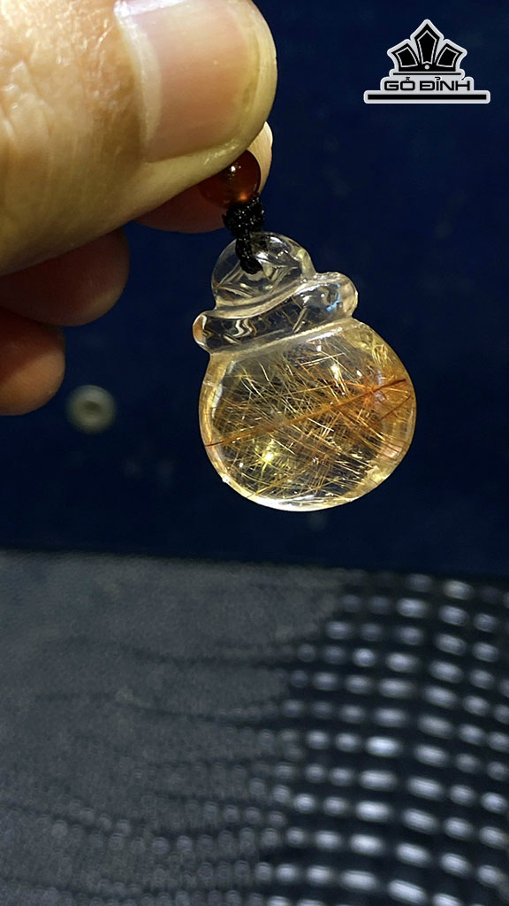 Mặt Dây Chuyền Túi Tiền Đá Thạch Anh Tóc Nâu Cao 24 Ngang 18,6 Sâu 12,5 (mm) 7gr