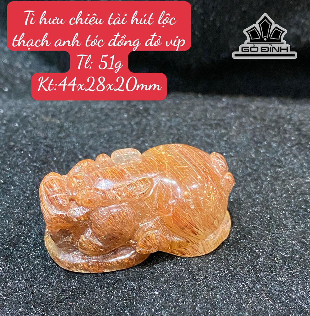 Mặt Dây Chuyền Tỳ Hưu Đá Thạch Anh Tóc Đỏ Cao 44 Ngang 28 Sâu 20 (mm) 51g