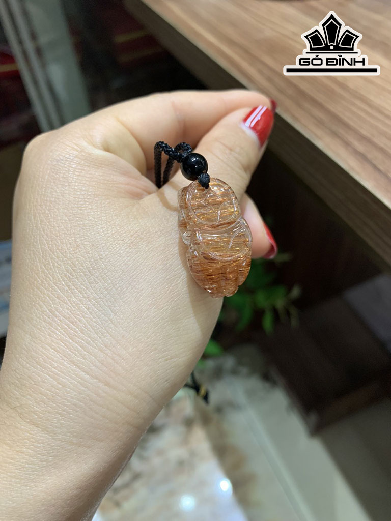 Mặt Dây Chuyền Tỳ Hưu Đá Thạch Anh Tóc Nâu Cao 28,4 Ngang 14,8 Sâu 14 (mm)