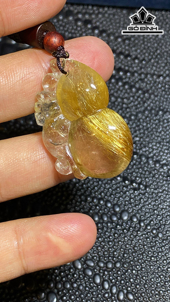 Mặt Dây Chuyền Tỳ Hưu Ôm Hồ Lô Đá Thạch Anh Tóc Vàng