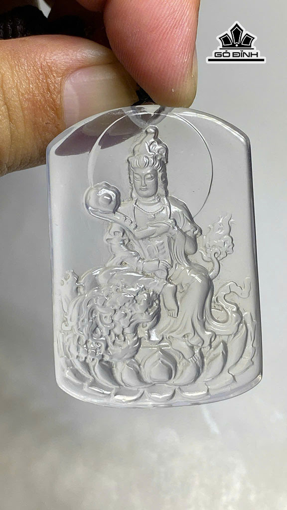 Mặt Dây Chuyền Văn Phù Sư Lợi Bồ Tát Đá Thạch Anh Trắng Cao 49,6 Ngang 33,9 Sâu 8,4 (mm) 26g