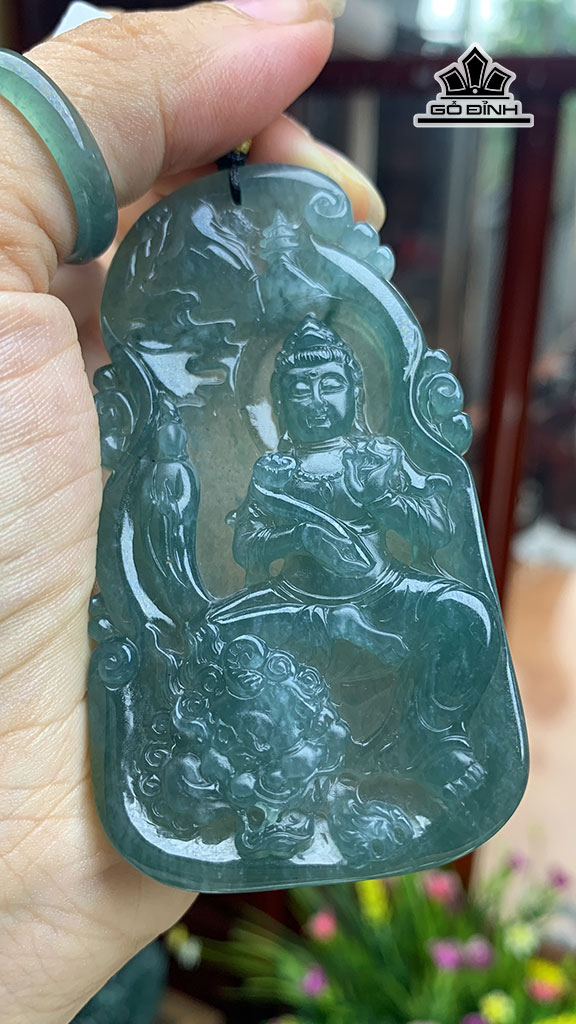 Mặt Dây Chuyền Văn Thù Băng Lam Đá Cẩm Thạch Cao 75,2 Ngang 42,1 Sâu 7,3 (mm) 42,5g