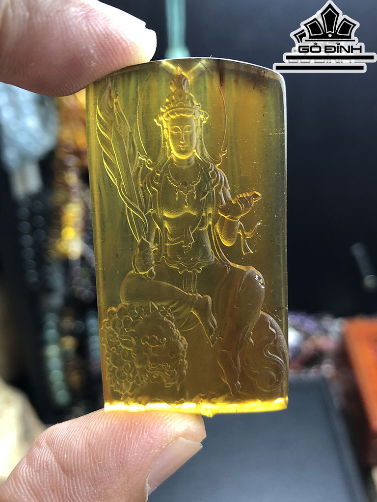 Mặt Dây Chuyền Văn Thù Bồ Tát Đá Hổ Phách Cao 49,6 Ngang 26,6 Sâu 8,2 (cm) 9,5g