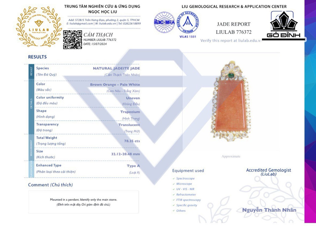 Mặt Dây Chuyền Vô Sự Bài Đá Cẩm Thạch Cao 32,12 Ngang 20,48 (mm) 78,35cts