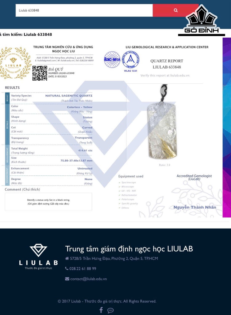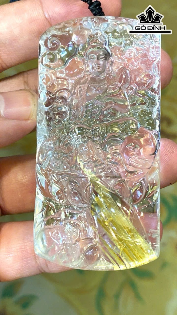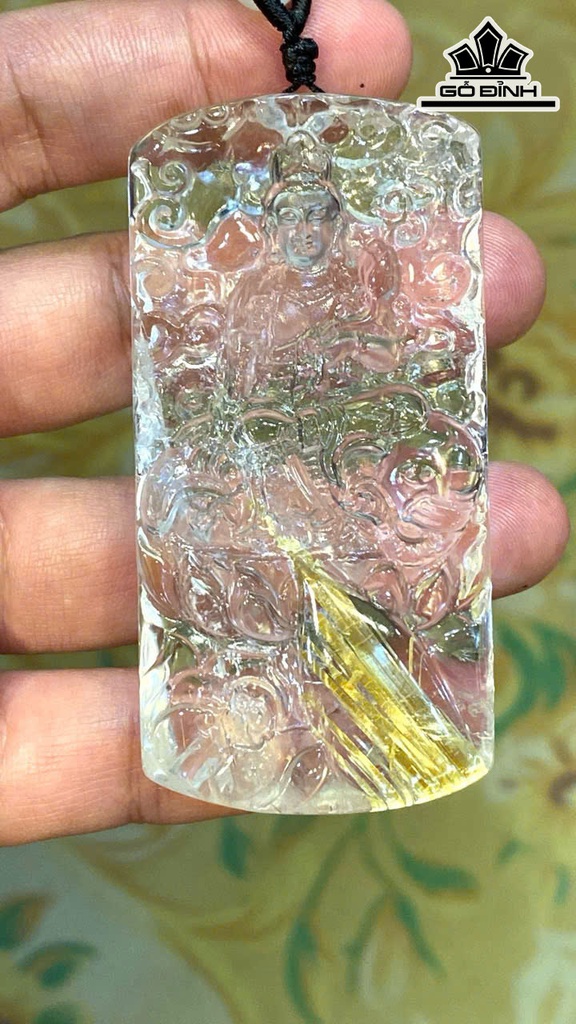Mặt Dây Phổ Hiền Bồ Tát Đá Thạch Anh Tóc Vàng Đã Kiểm Định LIULAB 633848