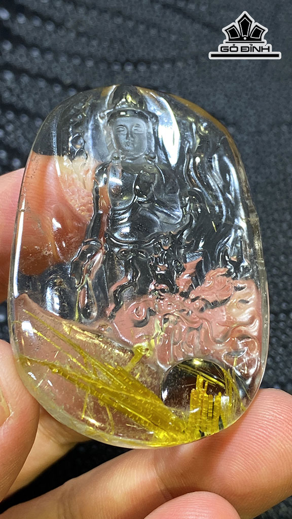 Mặt dây Quan Âm Cưỡi Rồng Đá Thạch Anh Tóc Vàng Cao 54 Ngang 36,6 Sâu 6,5 (mm) 27,9gr