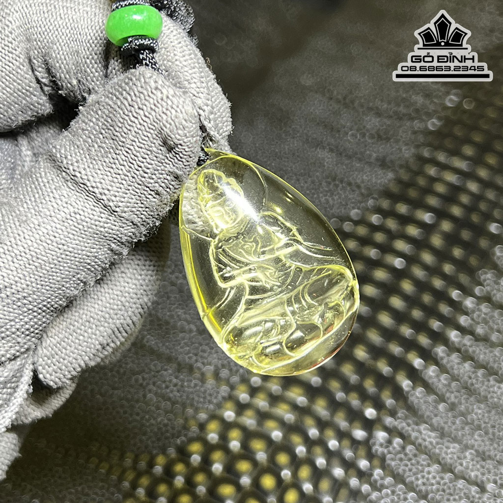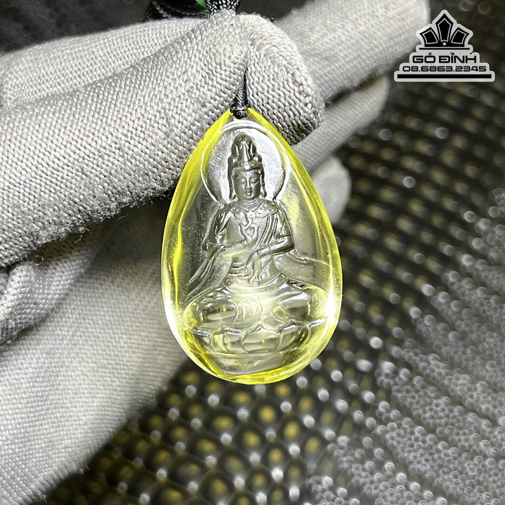 Mặt Dây Truyền Phật Quan Âm Đá Thạch Anh Vàng