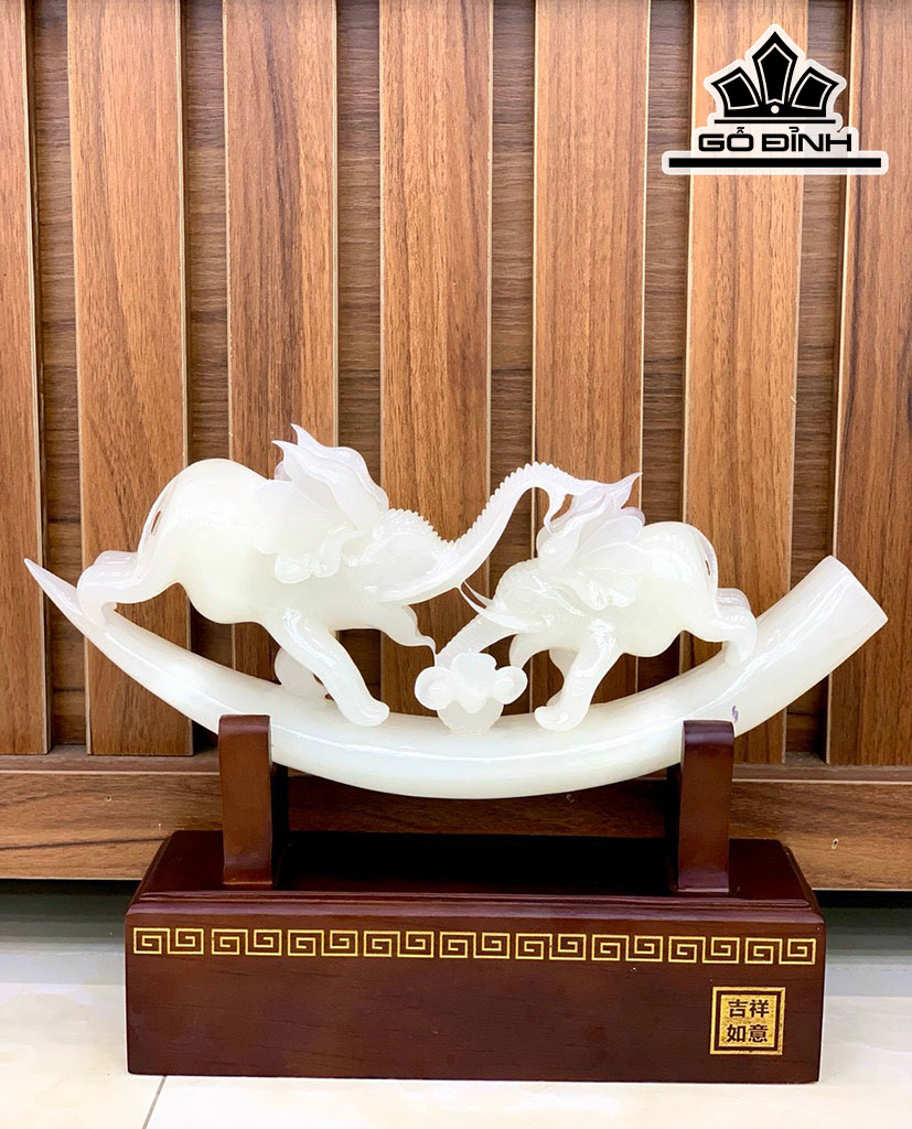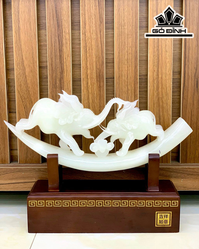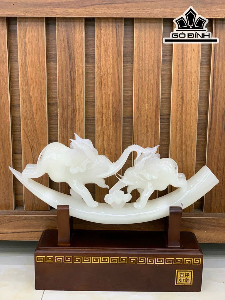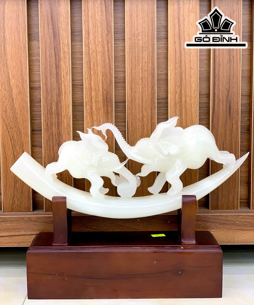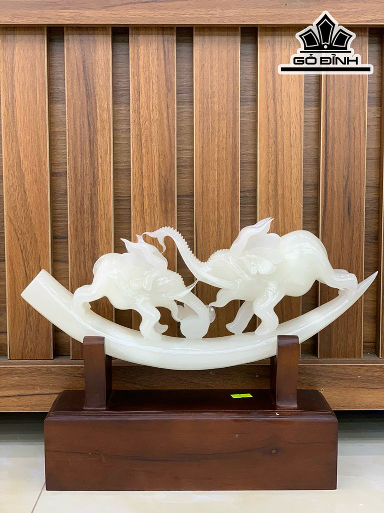 Ngà Voi Đá Onyx Trắng Cao 27 Ngang 37 (cm) 3,4kg Riêng Đá Cao 18 Ngang 38 (cm) 2,5kg