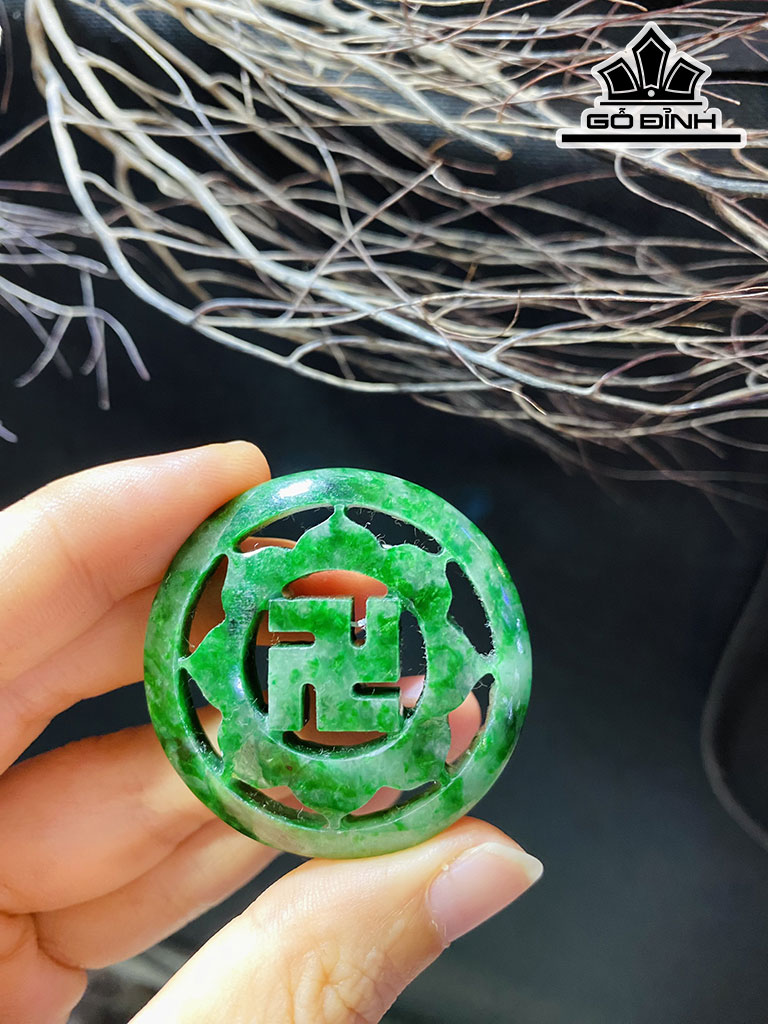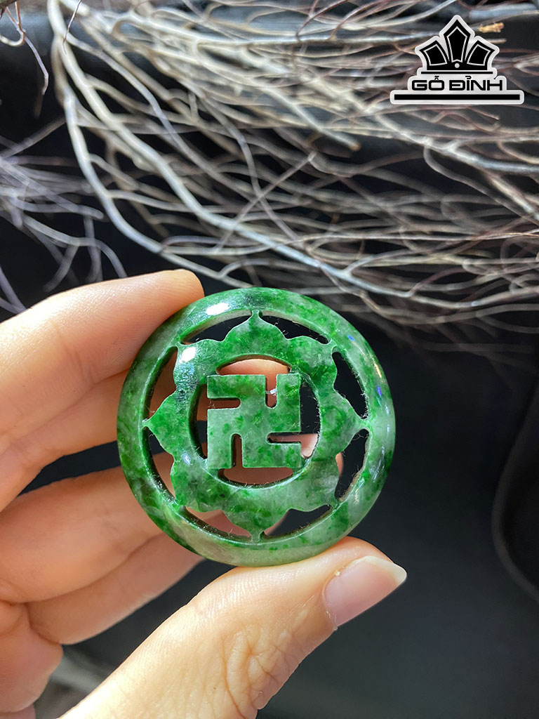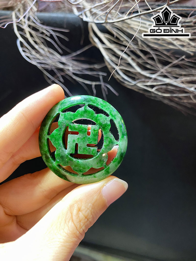 Ngọc Bội Liên Hoa Sen Khắc Chữ Vạn Bình An Đá Cẩm Thạch Cao 42 Ngang 8 (mm)